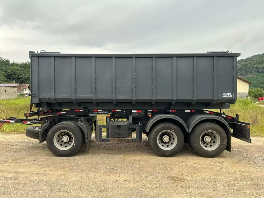 É um modelo de caçamba que utiliza um sistema de rolos para facilitar o carregamento e descarregamento em caminhões específicos, ideal para transporte de grandes volumes.